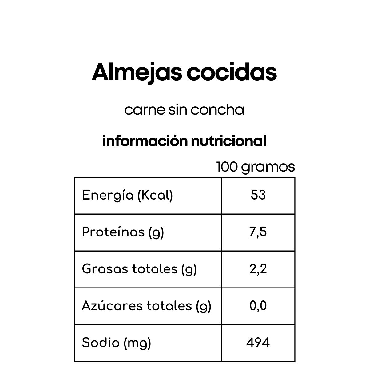 Almejas cocidas sin concha
