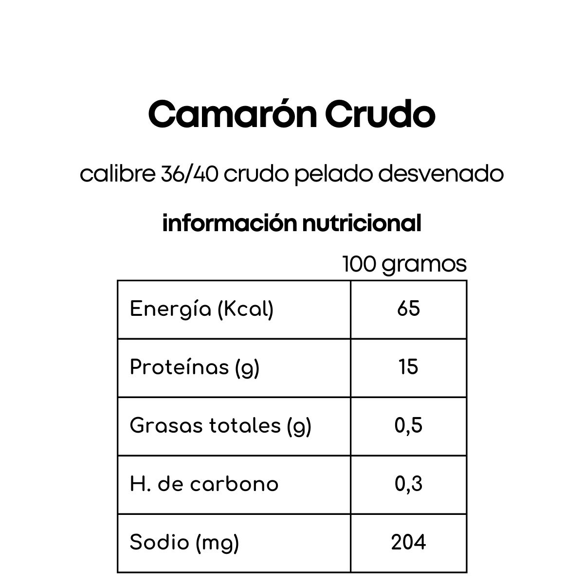 Formato: crudo, pelado y desvenado calibre 36/40 IQF